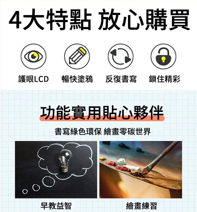 4分鐘前不要孩子一哭就給手機玩,大人省事對孩子不好!給個【液晶手寫板】就能玩半天,一鍵擦除,反復書寫,滿足孩子塗鴉愛好,還能培養想象力! - 【超夯活動】8.5寸買一送一 NT$1180