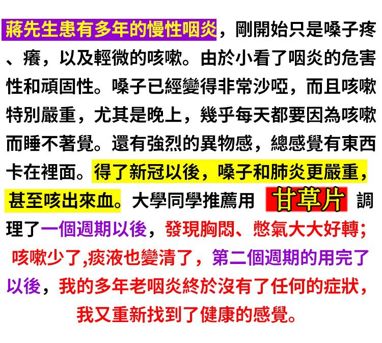 2分鐘前【權威醫師推薦 】咳嗽氣喘止不住,快用甘草片! ! 天然植物草本! 修復肺部損傷,保護肺部健康,每次一顆,化痰止咳,清理肺部有害垃圾! 三十年的老肺病全好了!免疫力也好起來了!! - 療程鞏固裝【保護肺部健康,清理肺部有害垃圾!】12入組--NT$1598