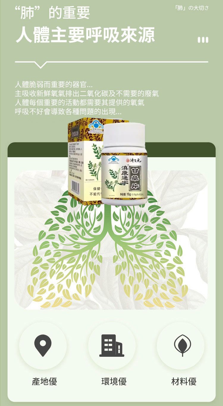20分鐘前【權威醫師推薦 】咳嗽氣喘止不住,快用甘草片! ! 天然植物草本! 修復肺部損傷,保護肺部健康,每次一顆,化痰止咳,清理肺部有害垃圾! 三十年的老肺病全好了!免疫力也好起來了!! - 療程鞏固裝【保護肺部健康,清理肺部有害垃圾!】12入組--NT$1598