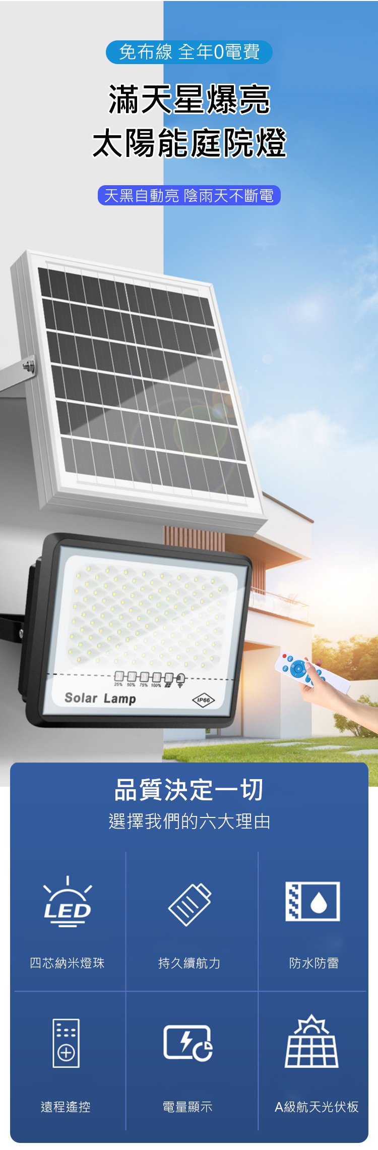 20分鐘前【照亮1000平】滿天星爆亮太陽能庭院燈,火爆熱銷中!官方正品,免費試用,台灣出貨!不好用直接退!售後無憂! - 【照亮1000平】滿天星爆亮太陽能庭院燈,超夯活動:一入$950